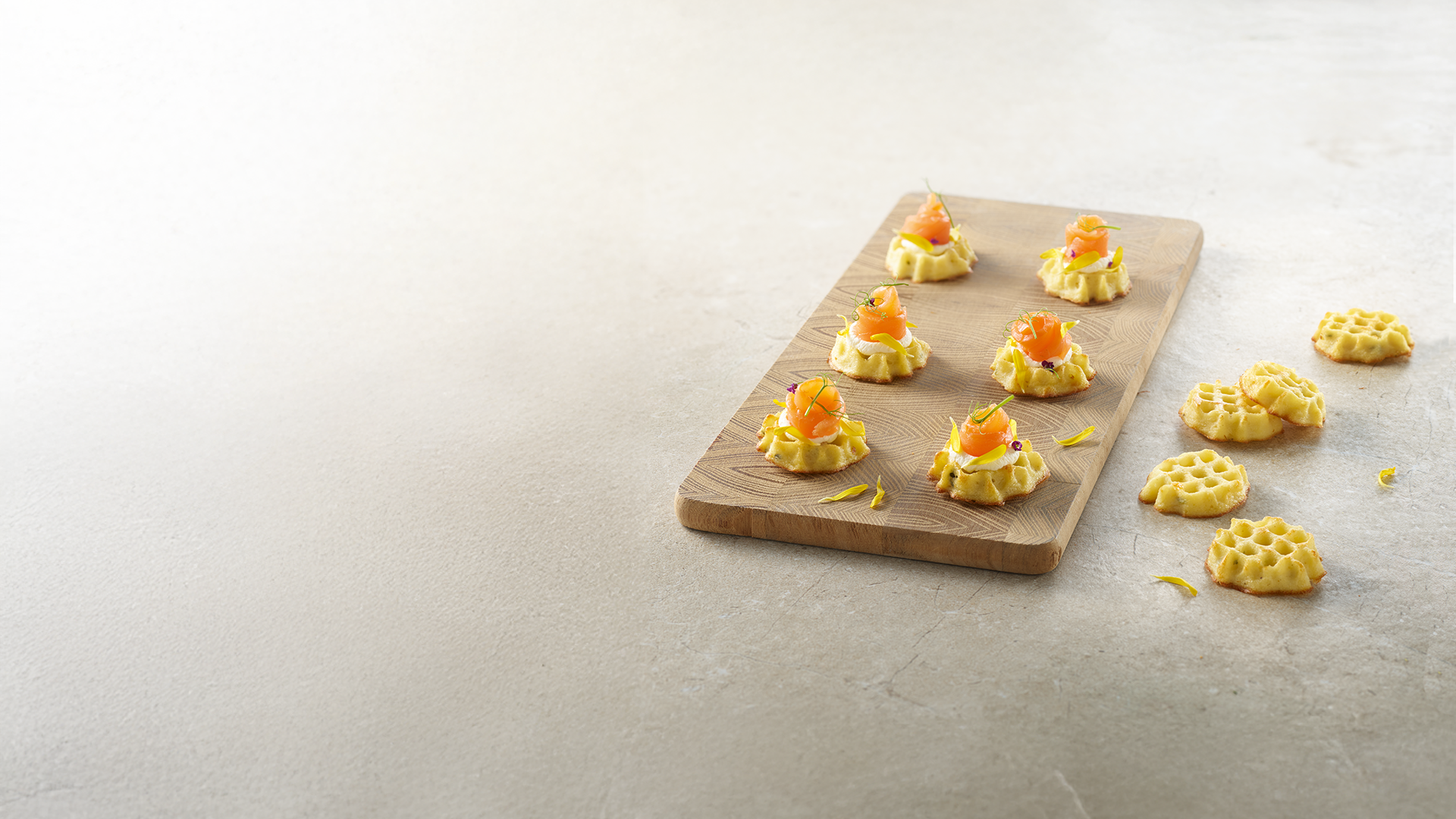 Con il suo gusto amato da tutti e la sua generosità, la Mini-Cialda di Patate si impone come una base indispensabile per creazioni salate facili da integrare, sia fredde che calde, nei vostri buffet.